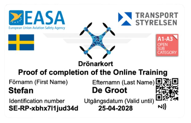 Sweden Custom Drone Licentse Print A1/A3